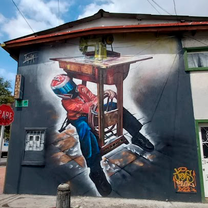 A toda maquina es la reproducción de la obra de un querido amigo colega, Jorge Igua, quien en algunas ocasiones tuvo el interés de pintar su obra junto a mà en la calle, para el disfrute de mucha gente, pero por cosas de la vida no logramos hacerla juntos. El me pidió el favor de reproducir su obra, reto que acepté con mucha seriedad ya que es un pintor extraordinario, y la realice en el barrio minuto de dios, por toda la calle 80 donde miles de personas la ven diariamente. Fue un proyecto grandioso de realizar y de mucha satisfacción para mi colega y para mÃ.
